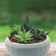 Саксия с подложка, подходяща за директно засаждане на цветя или за декоративни растения. Идеялна за декорация на офис, домове, както и за двора, терасата и градината. Размери: 1,3л. – ф 14см – височина: 13см 2,4л. – ф17см – височина: 15см 4,8л. – ф22см – височина: 19см